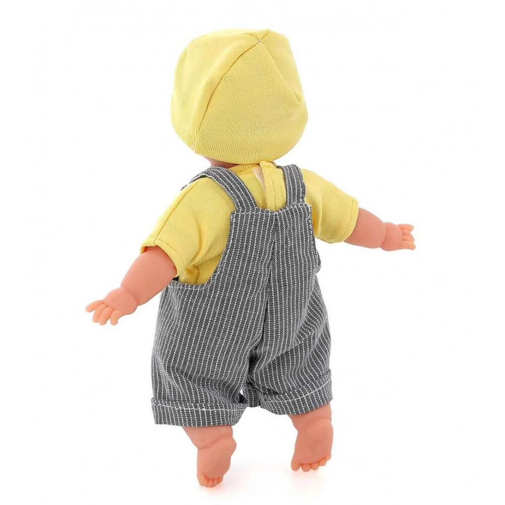 Ce poupon est vĂȘtu d’un habillage “Harry” confectionnĂ© en coton biologique composĂ© d’une salopette avec un tee-shirt de couleur jaune. Il est livrĂ© dans un sac en coton biologique pour pouvoir l’emmener partout.