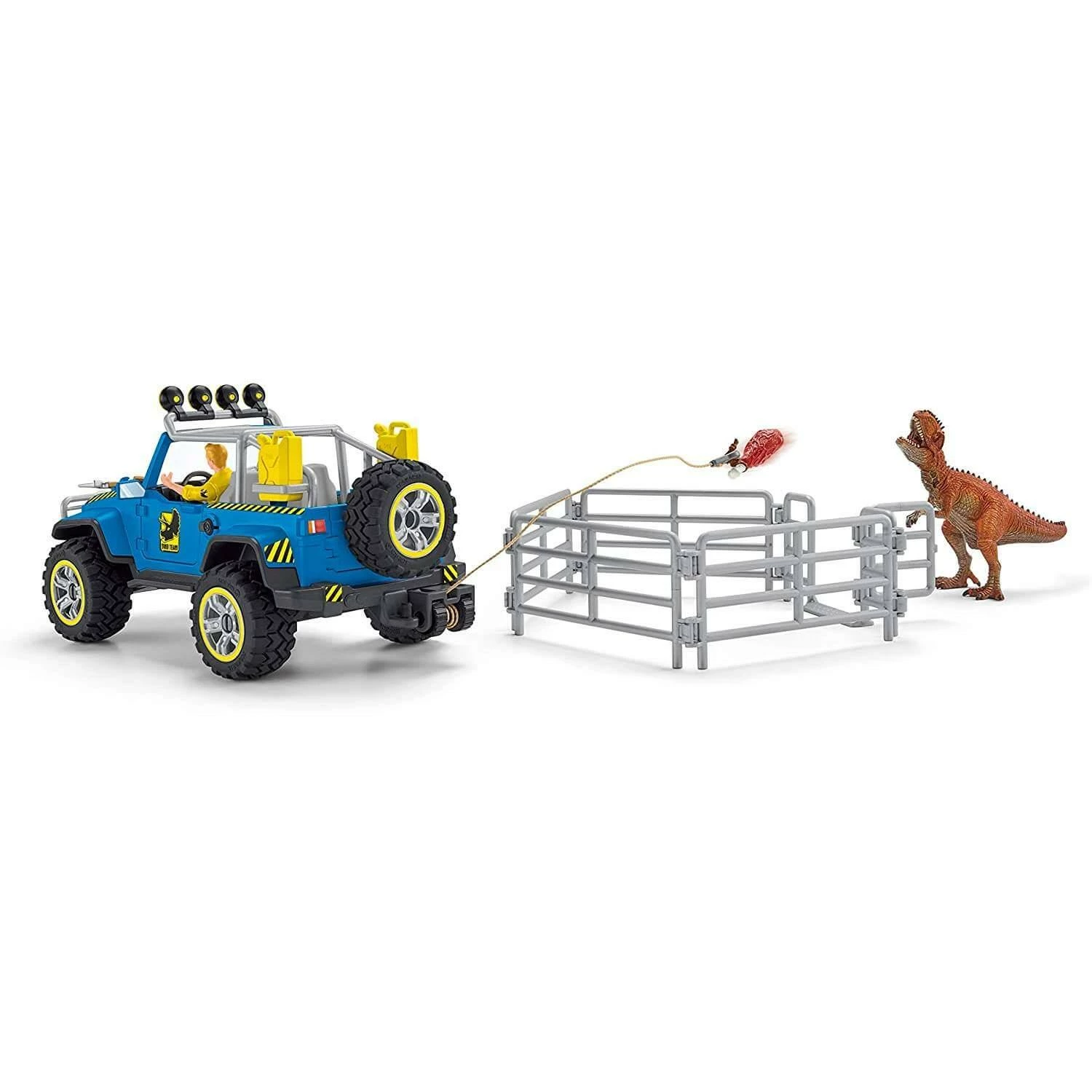 Contenu : 1 vĂ©hicule tout-terrain Ă treuil, 1 chercheur Luis, 1 giganotosaure, 1 appĂąt, 1 hache, 1 tourniquet, 1 bĂȘche, 1 caisse en aluminium, 4 Ă©lĂ©ments de clĂŽture, 1 portail d’entrĂ©e, 1 autocollant