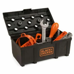 Vous ne vous ennuierez plus grĂące au camion Black et Decker qui offre tant de possibilitĂ©s de jeu notamment la crĂ©ation de sa propre grue grĂące aux accessoires inclus : rĂšgles de construction, vis, Ă©crous, roues, Ă©lĂ©ments emboĂźtables, tournevis, clĂ© plate, … au total ce sont 60 accessoires qui vous attendent pour jouer aux apprentis bricoleurs !