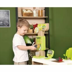 Ce mini supermarchĂ© possĂšde tout ce qu’il faut pour se plonger dans la peau d’un vĂ©ritable vendeur. En plus du coin fruits/lĂ©gumes, et du passage en caisse, tu pourras t’amuser Ă peser tes lĂ©gumes grĂące Ă la balance mĂ©canique : le poids affichĂ© s’ajuste en fonction des aliments pesĂ©s !