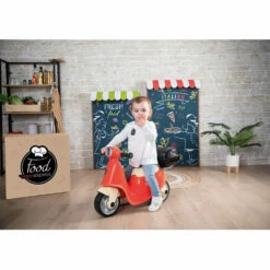 Ce porteur scooter de couleur rouge et beige saura ravir votre enfant avec son allure si rĂ©aliste et son design moderne. Avec le porte-bagage et le top case amovible, votre petit pourra d’ailleurs jouer Ă prĂ©parer toutes sortes de repas et Ă les livrer.