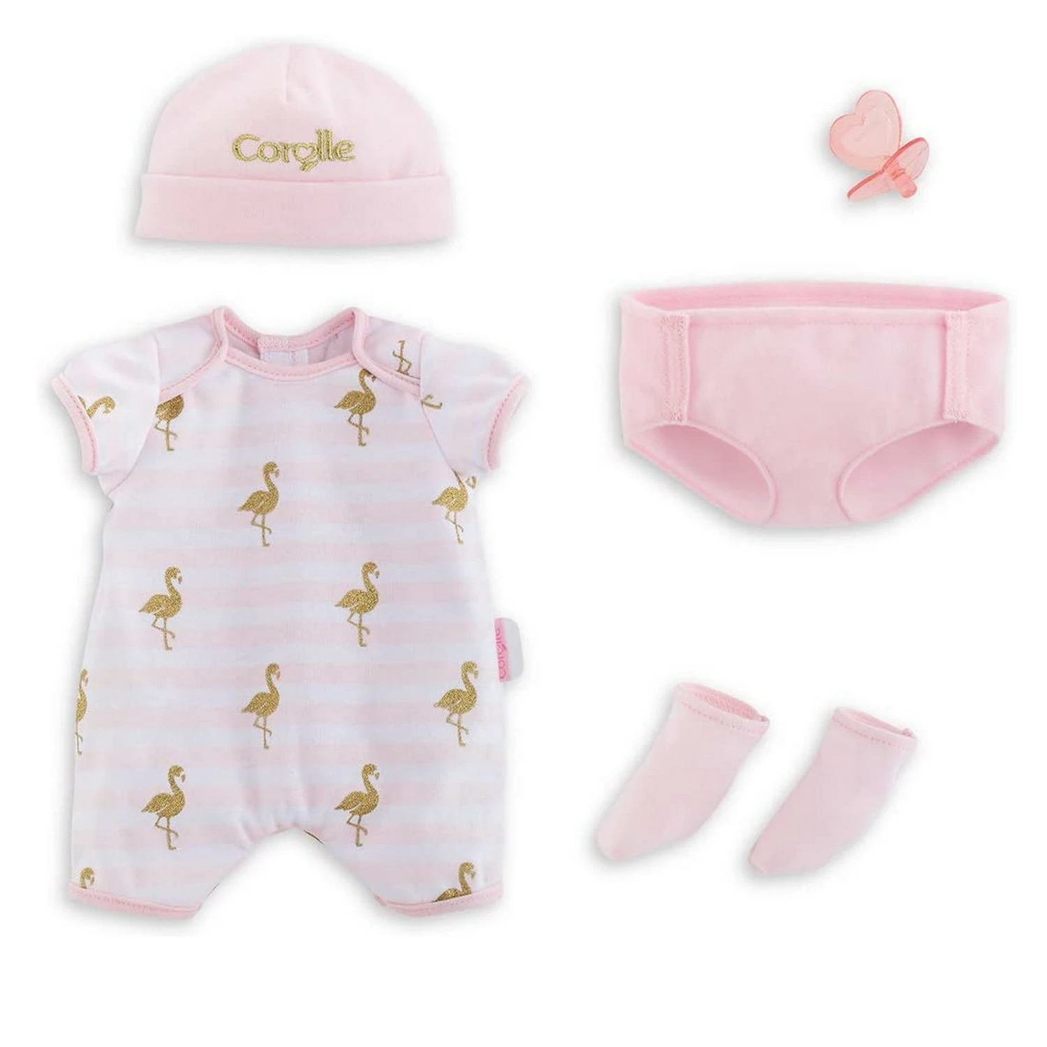 Le trousseau de naissance est indispensable pour les grands poupon de 36cm. Il contient un body à manchez courtes, un bonnet de naissance assorti, une paire de chaussettes, une couche en tissu et une tétine. Confectionné dans des matiÚres douces et résistantes, le body est facile à enfiler grùce aux bandes auto-agrippantes, adaptées à la dextérité des petites mains.