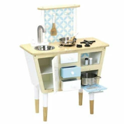 Les petits comme les parents vont adorer le look rĂ©tro de cette cuisine tout en bois. Elle affiche un joli design et des couleurs tendances qui donneront envie Ă l’enfant d’y passer du temps pour jouer.