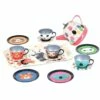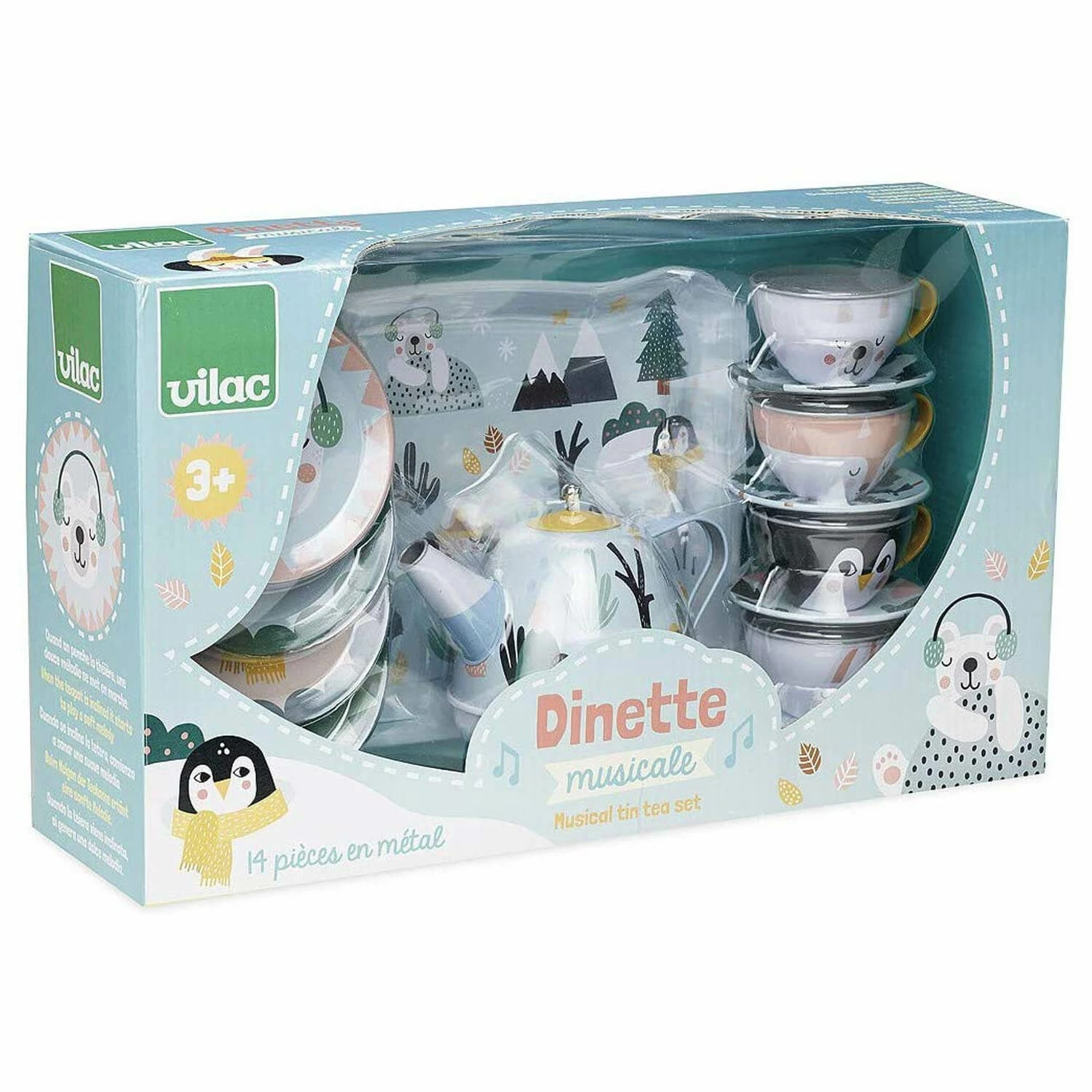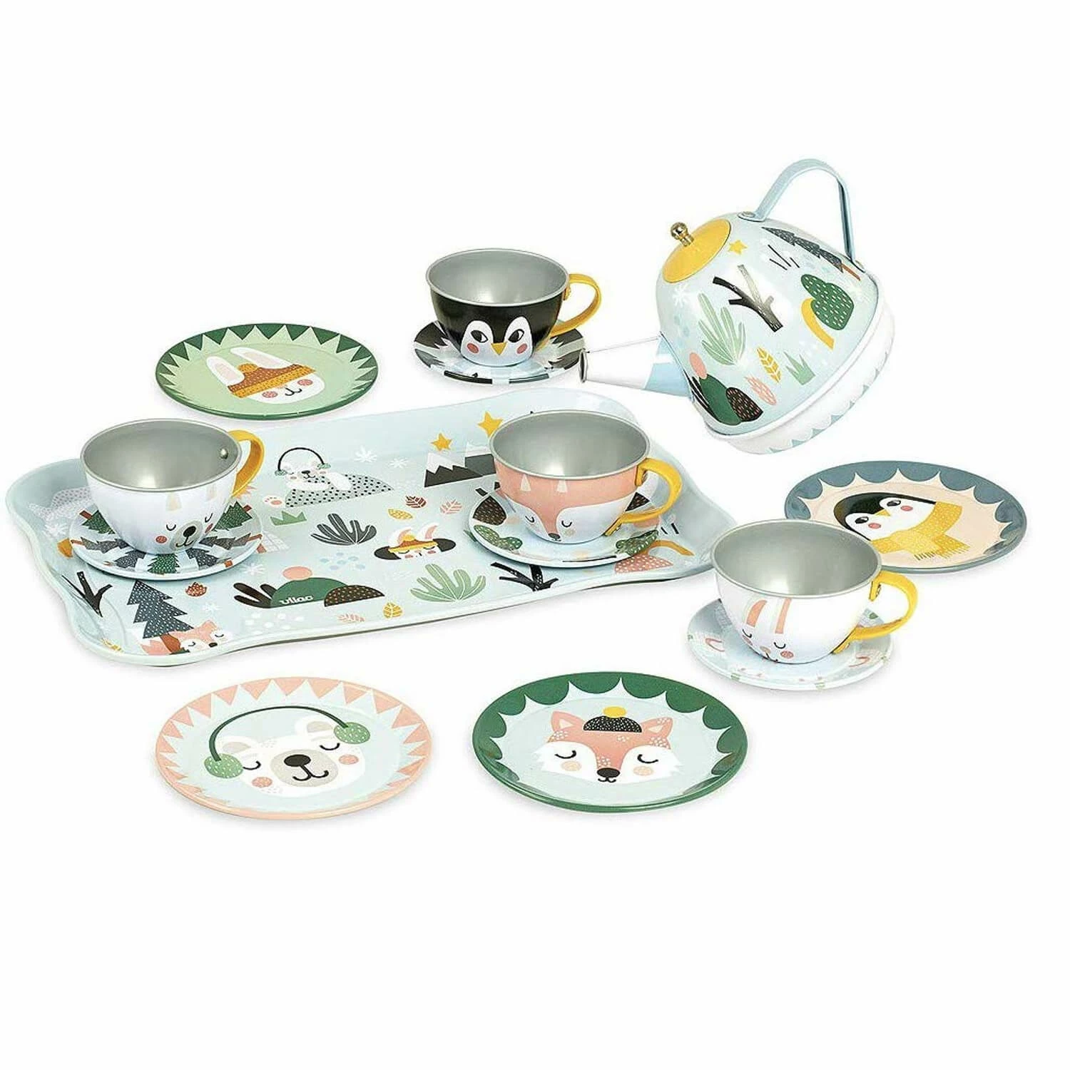 Vous avez invitĂ© vos amis Ă prendre le thĂ© ? Sortez votre magnifique service Ă thĂ© en mĂ©tal ! De belles assiettes Ă dessert, des tasses et leurs soucoupes illustrĂ©es, tout y est pour recevoir au mieux vos convives. Sans oublier la thĂ©iĂšre qui en plus d’ĂȘtre joliment dĂ©corĂ©e est aussi musicale. Quand on penche la thĂ©iĂšre une douce mĂ©lodie se met en marche. Vous pourrez recevoir vos amis en musique !
